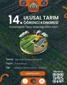 Yer: Akdeniz Üniversitesi / AntalyaTarih:07 - 08 - 09 Mayıs 2025Web Sitesi:…Sosyal Medya Adresleri:Kongre Kitabı (pdf):Kongre Ana Teması: Tarımda SürdürülebilirlikKongre Sloganı:Sürdürülebilir Tarım, Geleceğe Adım Adım