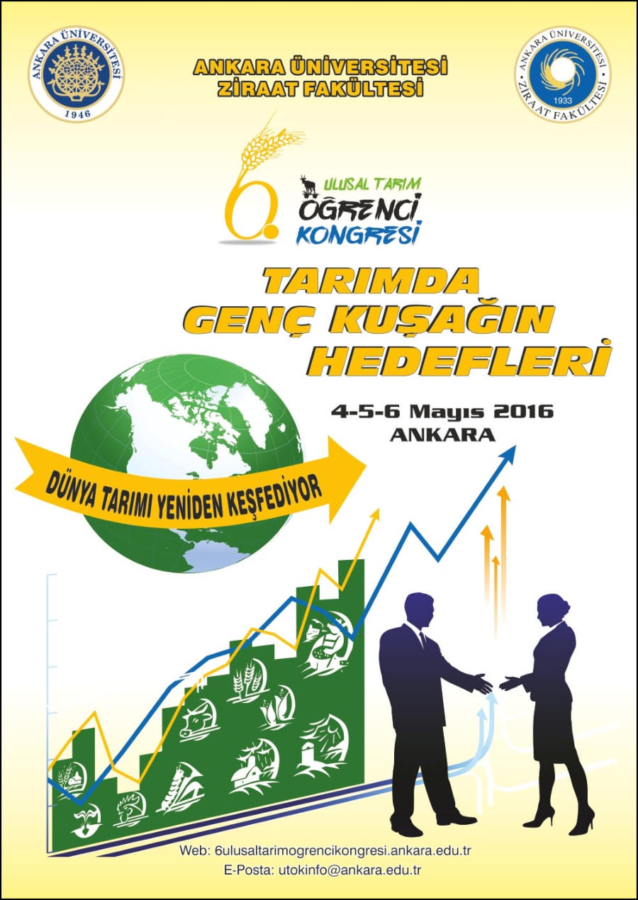 Yer: Ankara Üniversitesi / AnkaraTarih:4 - 5 - 6 Mayıs 2016Web Sitesi:Sosyal Medya Adresleri:Kongre Kitabı (pdf):Kongre Ana Teması: Tarımda Genç Kuşağın HedefleriKongre Sloganı:Dünya Tarımı Yeniden Keşfediyor