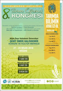 Yer: Niğde Ömer Halisdemir Üniversitesi / NiğdeTarih:27 - 28 - 29 Nisan 2018Web Sitesi:Sosyal Medya Adresleri:Kongre Kitabı (pdf):Kongre Ana Teması: …Kongre Sloganı:Tarımda Bilimin Ayak İzi Ol